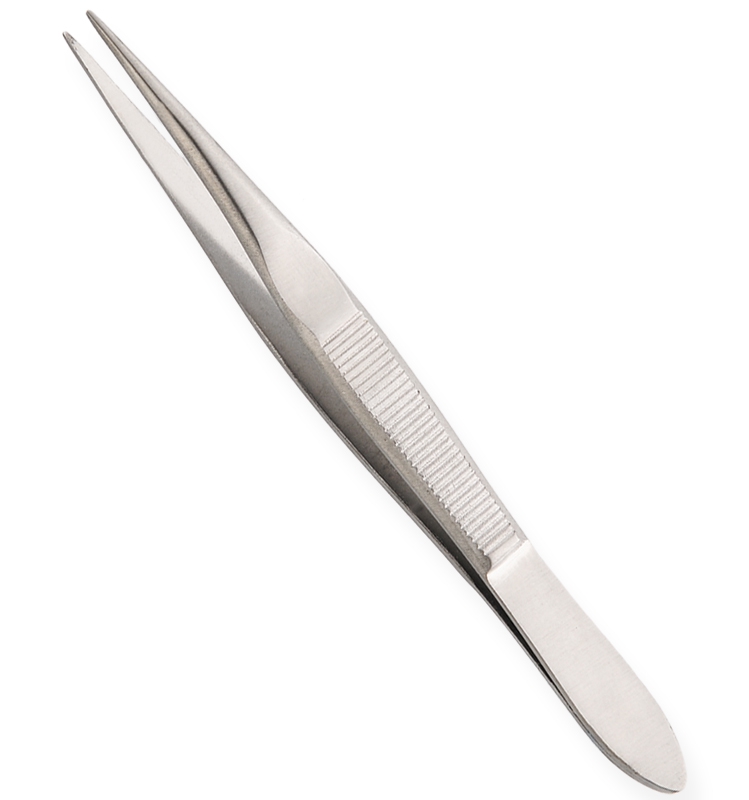 Eyebrow Tweezers Texture on Handle, Pointed Available Sizes. 10 cm Details. All tweezers are made of superior quality stainless steel J1/410, HRC° (hardness) 43° – 45°. Beautifully designed top quality stainless steel. This all purpose tweezers is ideal for facial hairs, bikini lines and other unwanted body hair. Available in slanted, straight and pointed tips