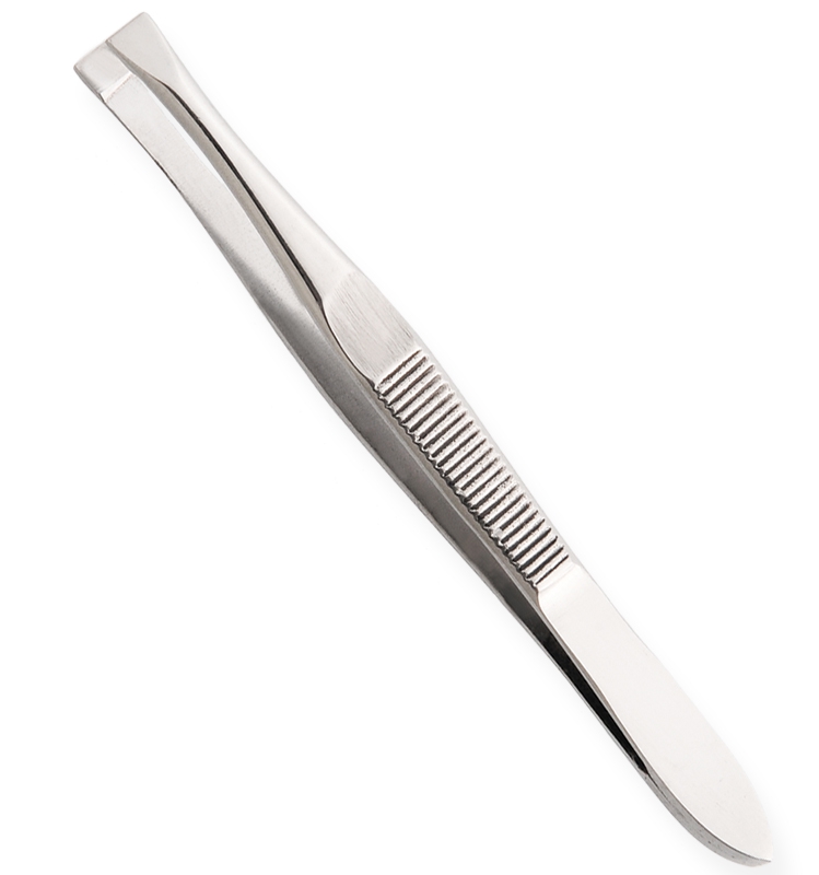 Eyebrow Tweezers Texture on Handle, Straight Available Sizes. 10 cm Details. All tweezers are made of superior quality stainless steel J1/410, HRC° (hardness) 43° – 45°. Beautifully designed top quality stainless steel. This all purpose tweezers is ideal for facial hairs, bikini lines and other unwanted body hair. Available in slanted, straight and pointed tips