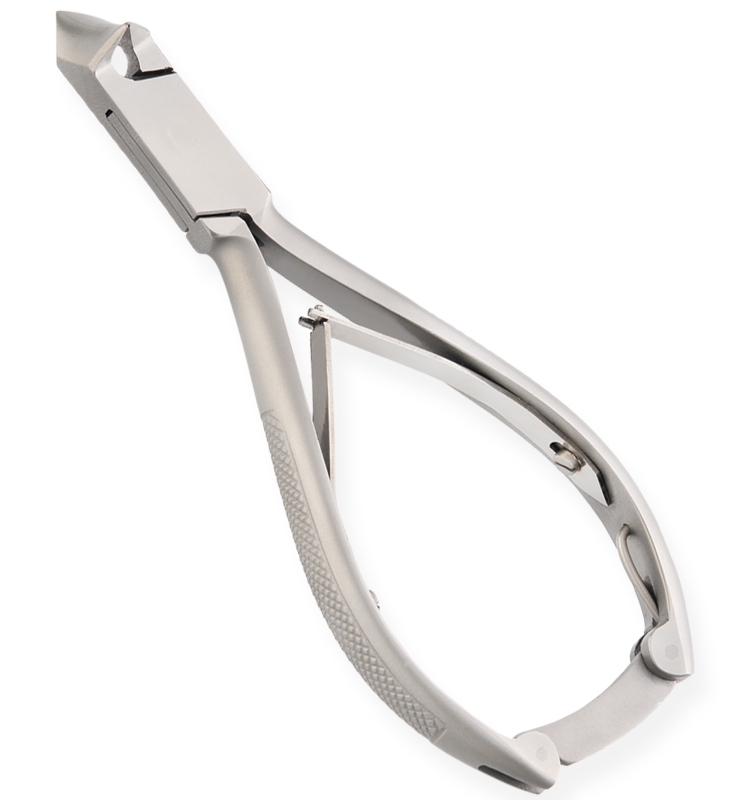 Nail Cutter Moon Shape Textured Handle, Double Spring, Box Joint with Back Lock Article. WI-6010 Available Sizes. 5.5 in Details. Implements produced for professional usage are made of Japanese stainless steel J/2 – 420, HRC° (hardness) 52° – 55°. Implements produced for personal usage are made of superior quality stainless steel 410, HRC° (hardness) 45° – 48°.