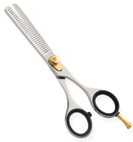 Professional Razor Edge Thinning Scissor Movable Screw with Fixed Finger Rest. Available Sizes. 4 in, 4.5 in Details. Razor Edge thinning scissors made of Japanese stainless steel J/2 – 420, HRC° (hardness) 52° – 55°. Also available in 440C HRC° (hardness) 60° – 65°. Available in fix, limitation, adjustable and hand adjustable screws with and without leaf spring.